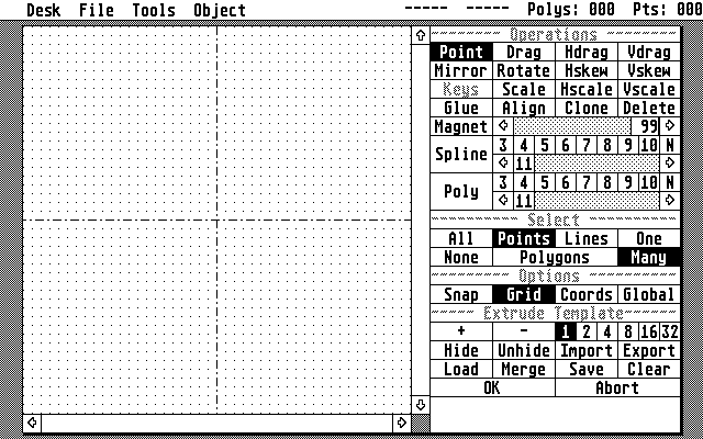 Create multi-nested, irregular polygon templates using flexible, mouse-controlled functions to scale, rotate, stretch, or otherwise manipulate a template before spinning or extruding it — either simply, or in a complex, custom-defined spline path. The created object (or any 3D object) may then be further manipulated in the CYBER SCULPT Object Editor — in real time! Grab one or more vertices and stretch, scale, rotate, delete... you name it, CYBER SCULPT has the tool for it.